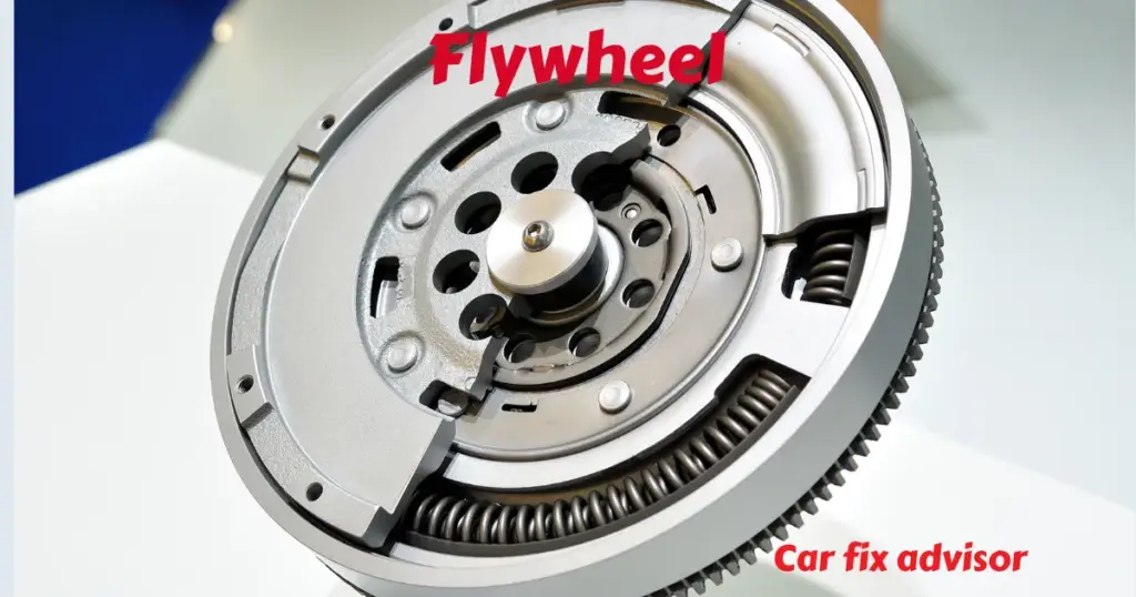 The flywheel is a heavy wheel attached to the crankshaft. It: